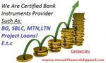We are project funder as well as financial lender. We have BG/SBLC specifically for BUY/LEASE at a leasing price of 4%+1% of face value Issuance by HSBC London, Barclays Bank and many other 25 top AA rated Banks. We also secure funding to facilitate and enhance your business and projects. Also We are into the provision of short term and long term business/personal loans for both small and large scale business funds.